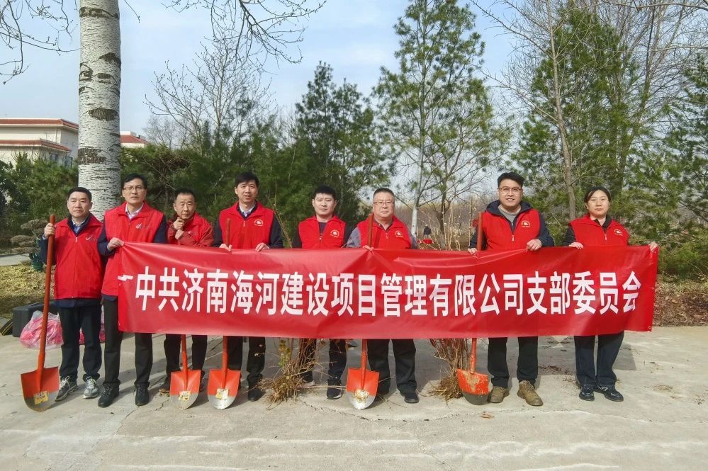 春回大地萬物蘇,植樹添綠正當時。為認真貫徹落實習(xí)近平生態(tài)文明思想,牢固樹立“綠水青山就是金山銀山”的發(fā)展理念,使廣大黨員成為生態(tài)文明建設(shè)的重要參與者、貢獻者和引領(lǐng)者,3月12日植樹節(jié)當天,山東省企業(yè)文化學(xué)會黨支部、濟南市園林和林業(yè)科學(xué)研究院科研第二黨支部、山東金衢設(shè)計咨詢集團有限公司黨總支部、濟南海河建設(shè)項目管理有限公司黨支部共同開展“同植一棵樹”主題黨日活動,以黨建聯(lián)建凝聚合力,用實際行動為城市添綠,為黨旗增輝!