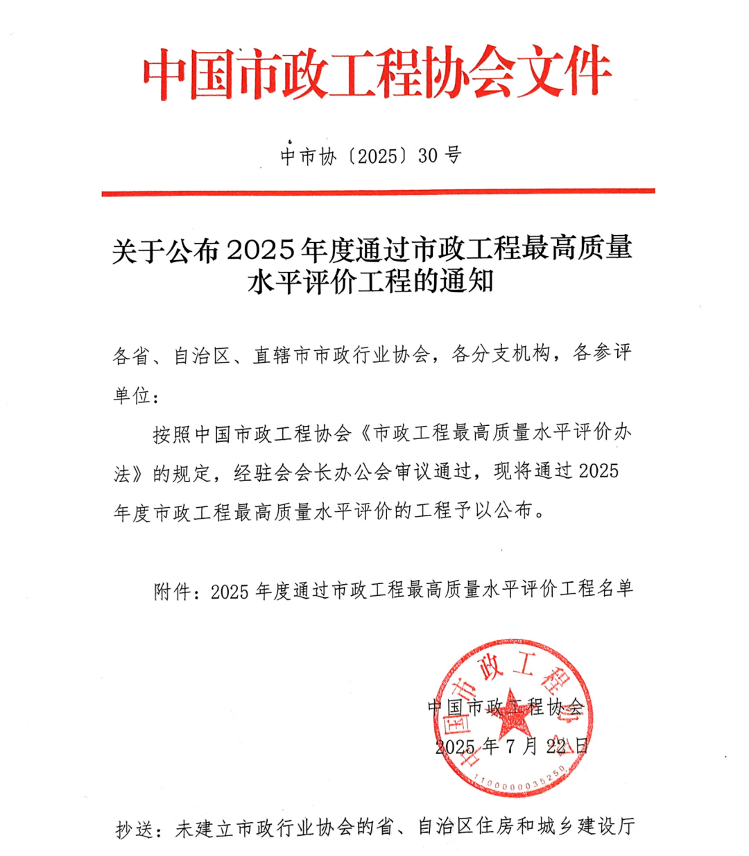 近日,中國市政工程協(xié)會發(fā)布了《關(guān)于公布2025年度通過市政工程最高質(zhì)量水平評價工程的通知》,公司參建的石熱入濟長距離輸送供熱工程榜上有名。該獎項是市政工程行業(yè)在工程質(zhì)量方面最高的質(zhì)量水平評價,評價堅持精益求精、寧缺毋濫和公開、公正、公平的原則,每年進行一次,原則上數(shù)量不超過120項。